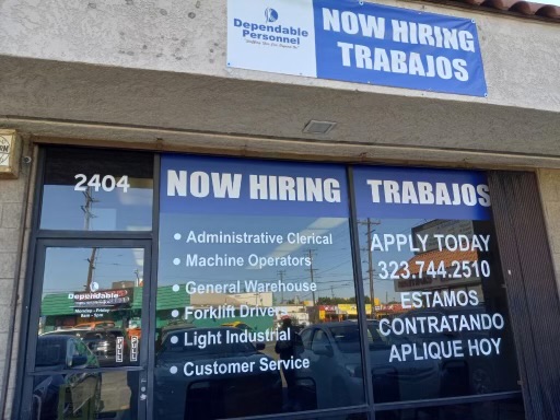 Dependable Personnel HP es una reconocida agencia de empleo en Huntington Park, inaugurada hace años. Ofrece variadas ofertas laborales y es notable por su trato amable en la admisión de solicitudes. Muchos aprecian su eficacia en cubrir urgentes necesidades de empleo.